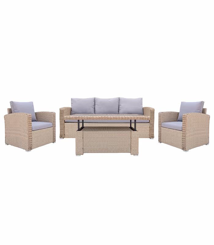 Tato stylová sada zahradního nábytku poskytne pohodlné místo pro 4-5 osob a vytvoří útulný prostor pro venkovní rekreaci. Díky modernímu designu a funkčnosti je sada dokonale integrována do zahrady, terasy nebo dokonce na prostorném balkonu. Bez nutnosti složité údržby se zlepší komfort používání.