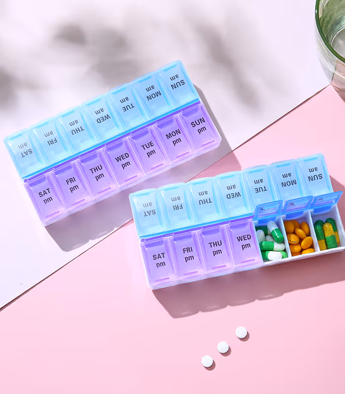 - Ossza fel a tartalmát 7 napra kényelmes, egymástól független rekeszekben és két napszakra.