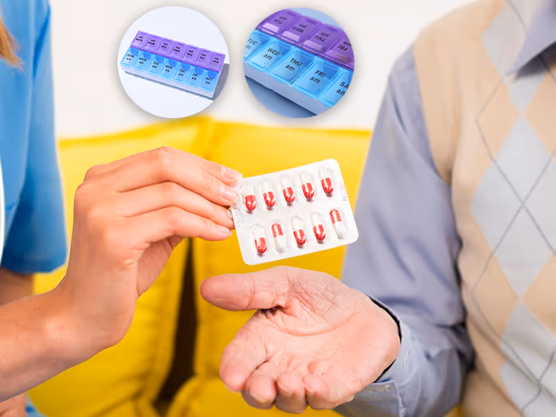 - Segít egy nagyobb mennyiségű tablettát szedő idős embernek.