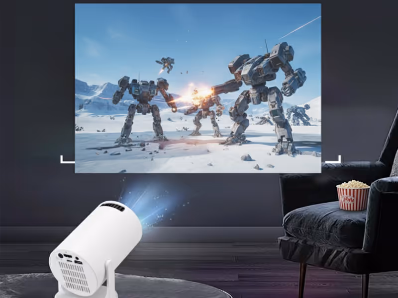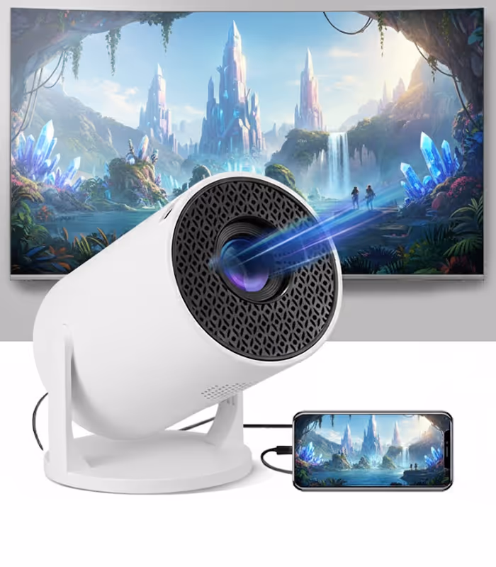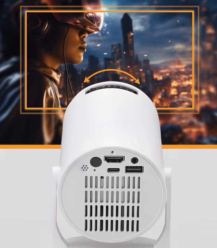 Mini Projektor to wyjątkowo przenośne urządzenie idealne do wszechstronnej rozrywki i pracy. Wyświetla obraz w rozdzielczości Full HD (1920x1080), gwarantując doskonałą jakość. Kluczową zaletą jest wygoda ustawienia: dzięki automatycznej korekcji trapezu obraz natychmiast staje się idealnie prostokątny, niezależnie od kąta projekcji. Projektor jest również smart: wbudowane systemy Android i iOS zapewniają łatwe, bezprzewodowe połączenie i dostęp do treści, eliminując potrzebę użycia kabli. Całość dopełnia ręczna regulacja ostrości, pozwalająca na uzyskanie krystalicznie czystego obrazu.